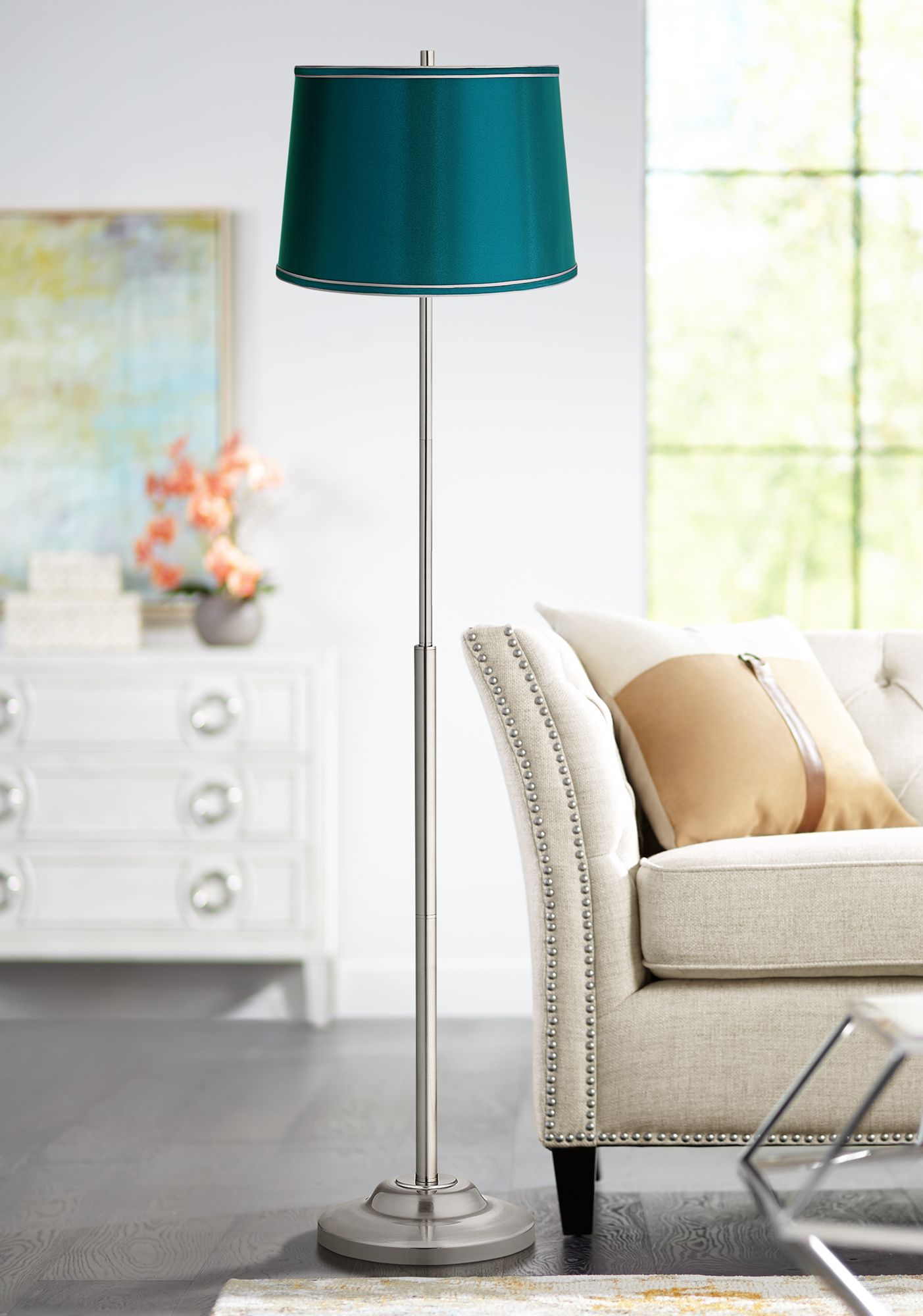 Red Balls Giclee Brushed Nickel Pull Chain Floor Lamp ... from image.lampsplus.com Rated 4.5 out of 5 stars. Its sure to add a tasteful touch to your space. Sold & shipped by shopladder. 4.5 out of 5 stars. It's impossible to assemble completely straight. Showcasing a sleek metal shade, a hanging pull chain, and a luxurious gold finish all on top of a sturdy black base. Space saver glass tray table floor lamp. The floor lamp boasts two independently operated light fixtures with individual pull chains to turn the lights on and off, allowing for three different lighting designs.